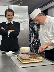 Mivel a több mint 50 éves cukrászda falain már lenyomatott hagyott a történelem, örömmel vállalták el ezt a felkérést, amelynek eredménye egy csokoládés és mandulalisztes rétegen nyugvó, bourbon vanÃliás és kávés mousse lett, meglepetés ropogós réteggel a tetején. Mindez sós karamellel, kolumbiai csokoládés glazinggel és roppanós kávés meringue-gel dÃszÃtve.